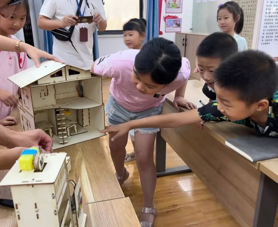豐富精彩的課堂,讓小朋友們非常感興趣,大家都積極舉手發(fā)言。科普志愿者將充滿科技感的手工作品拿出來,小朋友們對其中構(gòu)造非常好奇。“這個(gè)是一個(gè)簡易電梯,按下你想去的樓層,他就會到那一層?!笨破罩驹刚呦蛐∨笥褌冋故臼止る娞?。科普講座結(jié)束后,科普志愿者給每個(gè)小朋友都發(fā)放了手工材料包,大家一起來制作空氣動力飛機(jī)。