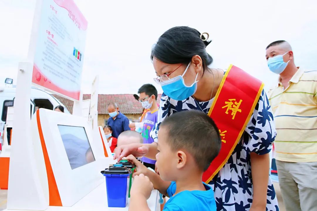 隨后,科普志愿者帶領(lǐng)村民和孩子參觀“禮贊科學(xué)家”宣傳展板,觀看法治、廉政、防溺水宣傳視頻,并為大家發(fā)放了科學(xué)實驗套裝,希望孩子們可以自己動手探索科學(xué)的樂趣??破沾笈褴嚨牡絹?,為革新村的孩子們帶來了一堂生動有趣的科普課。“謝謝你們來這里,讓我們學(xué)到了這么多知識,真開心?!痹谙删余l(xiāng)許集小學(xué)四年級就讀的羅錦軒高興地說道。