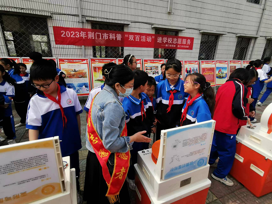 本次活動(dòng)由荊門市科技館、沙洋縣科協(xié)、沙洋縣教育局承辦,通過(guò)“聚焦二十大,奮進(jìn)新時(shí)代”主題展覽、科普大篷車展品體驗(yàn)以及播放科學(xué)宣傳視頻等形式,為學(xué)生們提供一個(gè)學(xué)習(xí)、交流的平臺(tái),激發(fā)學(xué)生們對(duì)科學(xué)探索的濃厚興趣和濃濃的愛國(guó)之情。