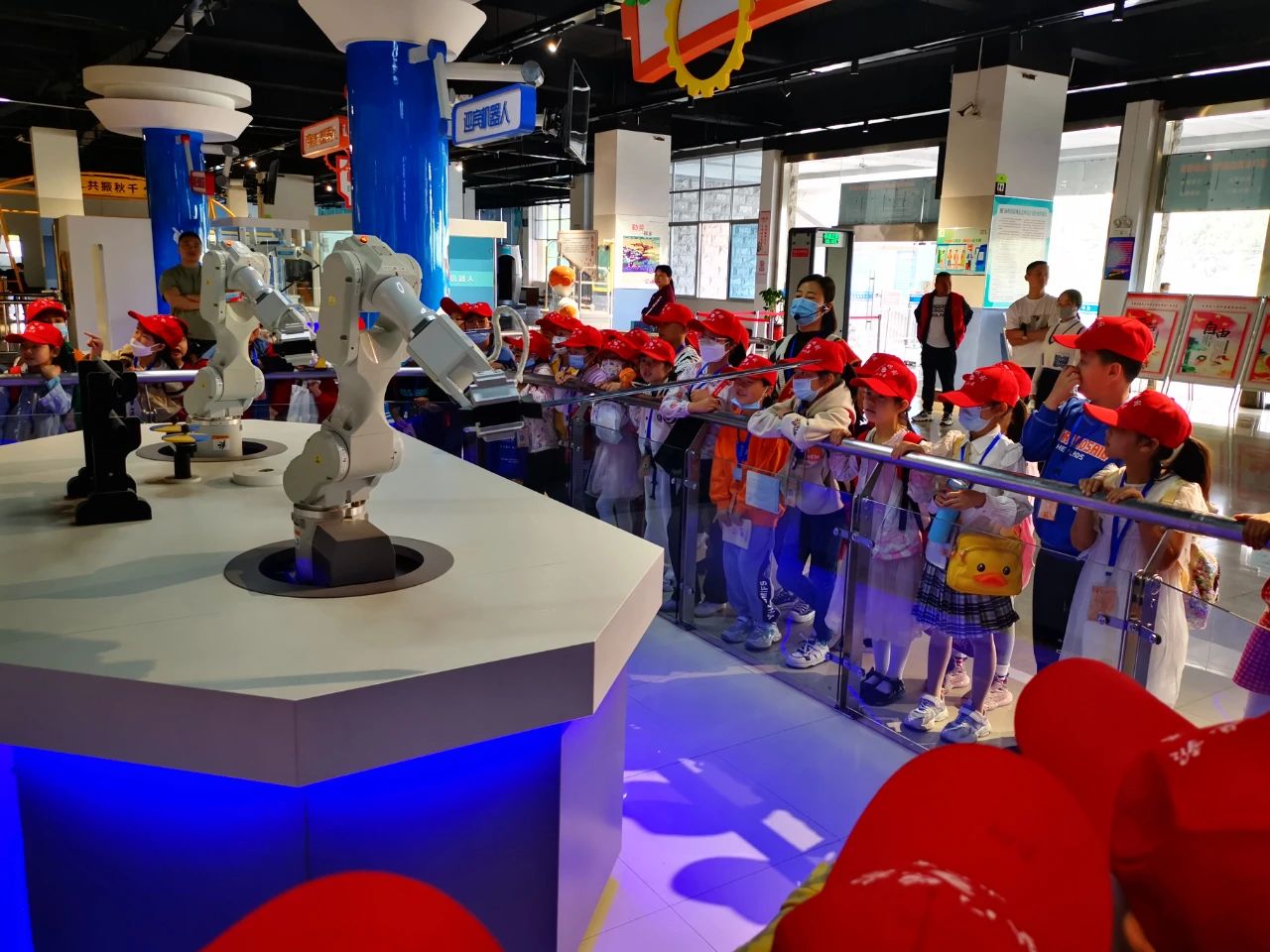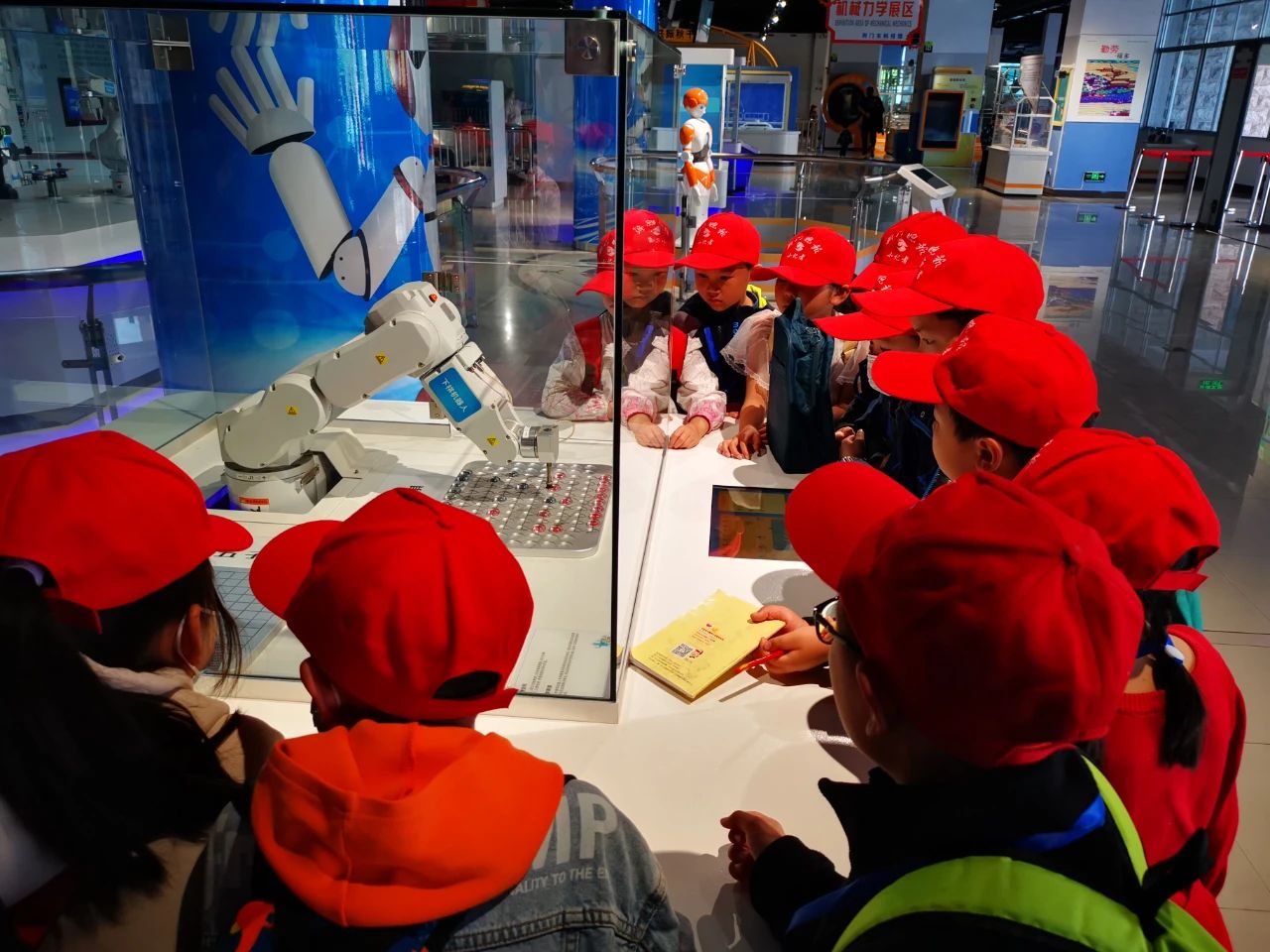 活動共開展了三場。每場活動小記者列隊集合后分成兩組,在市科技館講解員的帶領下,開啟了科學探索之旅。在科技館內(nèi),講解員帶領小記者分別參觀了展廳內(nèi)的機器人樂園、科學探秘、機械力學三大展區(qū) 80余件展品。講解員為小記者講解了每件科技展品的操作過程、科學原理等知識。小記者一邊聽著講解,一邊操控展品。看到展品展現(xiàn)出不同的形狀、姿態(tài)時,小記者們發(fā)出了陣陣驚嘆聲。
