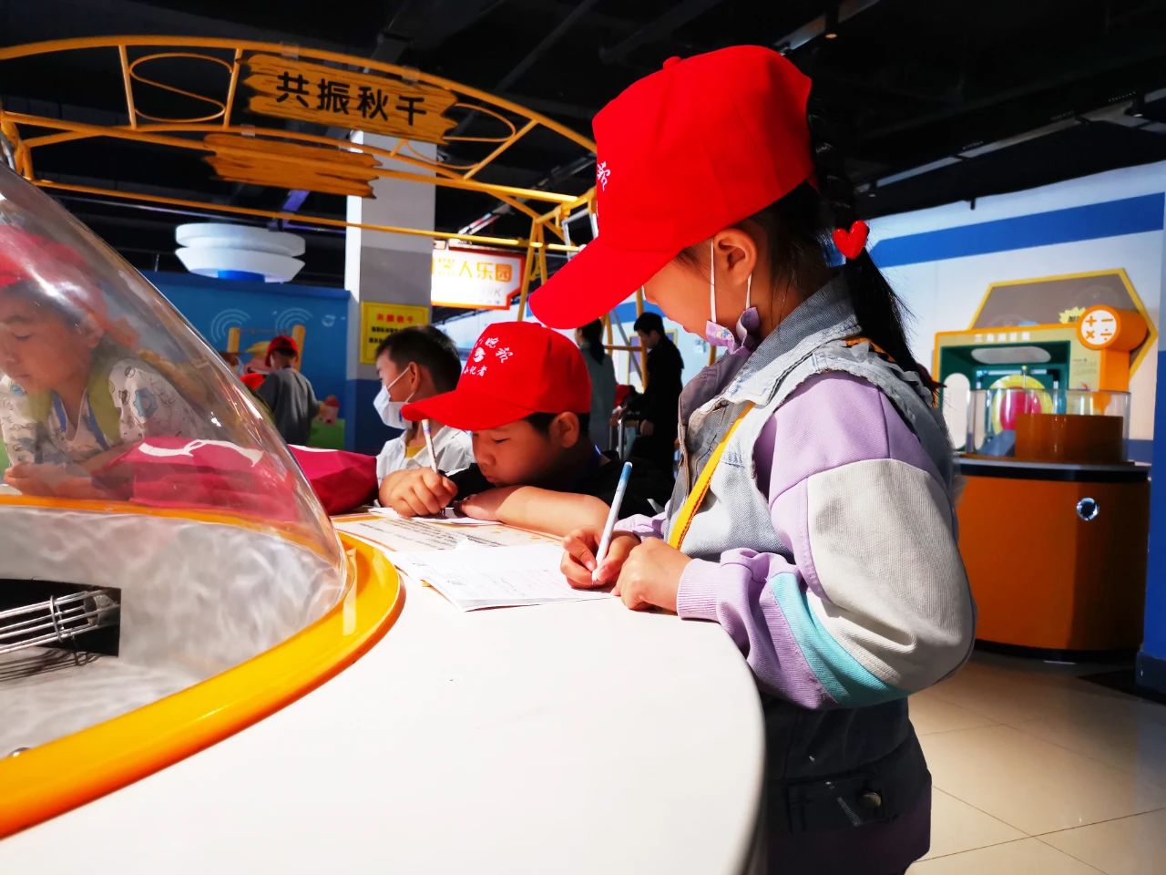 兩個小時的科技館之旅結(jié)束了,小記者仍意猶未盡。有小記者在家長的陪同下再次步入科技館體驗科技展品,記錄展品的構(gòu)造原理和操作步驟。