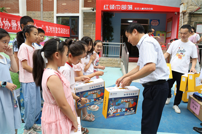 在“崇尚科學(xué)文明,反對迷信邪教”主題展覽中,科普志愿者為大家講解什么是邪教及邪教組織的社會危害性,讓青少年們認識到邪教不僅毒害個人思想,還會破壞社會秩序和諧穩(wěn)定,引導(dǎo)大家從小樹立崇尚科學(xué)、反對邪教的觀念。參觀結(jié)束后,市科技館為青少年發(fā)放了科學(xué)實驗包,向社區(qū)捐贈了文體用品及書籍,助力社區(qū)建設(shè)“紅領(lǐng)巾”部落。