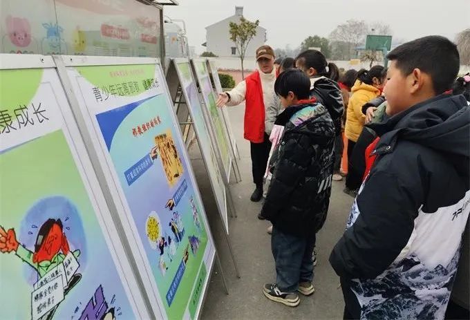 在“踐行二十大 健康向未來(lái)”“科技前沿”科普展板前,科普志愿者向?qū)W生們耐心講解青少年健康常識(shí)等,幫助提高學(xué)生們的健康意識(shí)和健康素養(yǎng)。