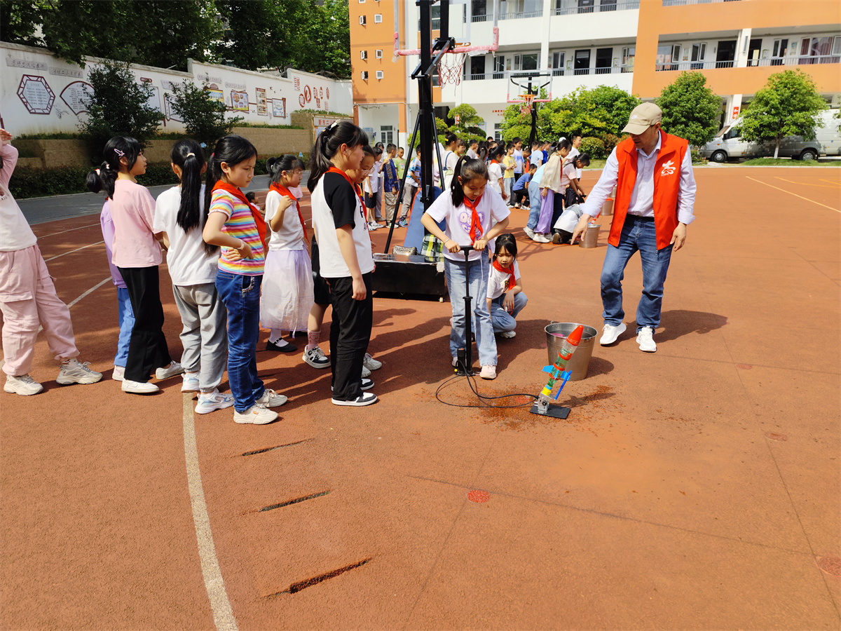 當(dāng)天的航空科普講座更是將活動(dòng)推向了高潮。課堂上,科普志愿者用通俗易懂的語(yǔ)言,為學(xué)生們講解了航空知識(shí),從飛機(jī)的原理到太空探索的奧秘,引發(fā)了學(xué)生們的濃厚興趣。他們聚精會(huì)神地聽(tīng)講,不時(shí)發(fā)出驚嘆和掌聲。隨后,科普志愿者帶領(lǐng)學(xué)生放飛“水火箭,當(dāng)水火箭在操場(chǎng)上騰空而起,劃破天際,現(xiàn)場(chǎng)氛圍瞬間被點(diǎn)燃。學(xué)生們歡呼雀躍,為這成功放飛而自豪。