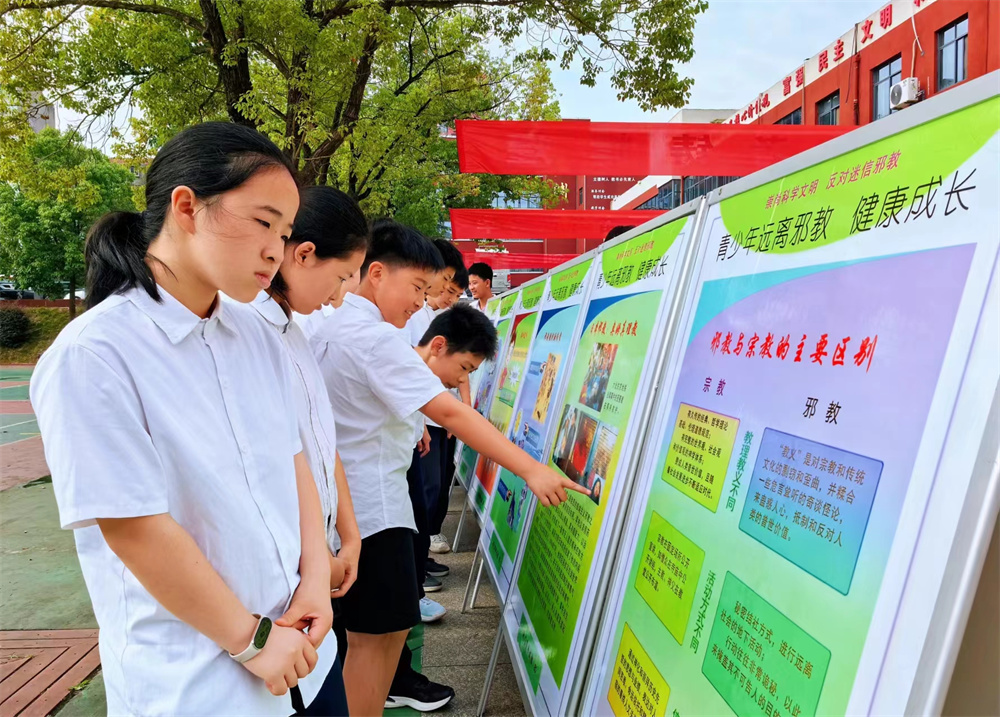 荊門市外語學(xué)校是國家義務(wù)教育教學(xué)改革實驗校和全國中學(xué)科學(xué)教育實驗校。當(dāng)天,荊門市科協(xié)、荊門市科技館向該校師生捐贈了3000多冊科普書籍,向?qū)W生宣講反邪教、防溺水及普法知識。