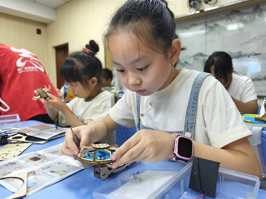 “我的風(fēng)扇做好了,好涼快呀!”在科普公益課堂上,志愿者們耐心教授小朋友制作“人體感應(yīng)風(fēng)扇”,孩子們興致勃勃,積極動手實踐。完成了制作的小朋友,興奮地舉著風(fēng)扇請大家“體驗”。