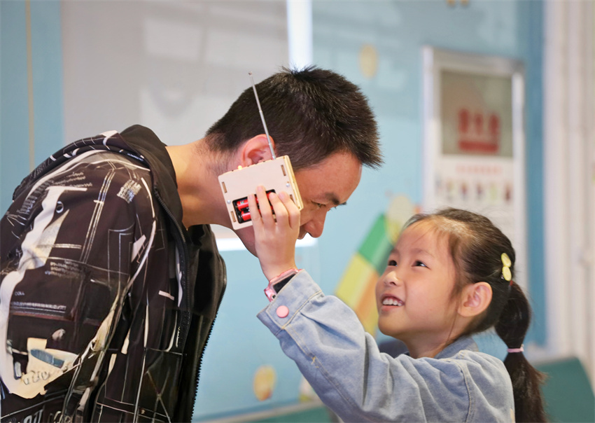 “老師,我的收音機(jī)有聲音啦!”經(jīng)過細(xì)致的安裝和調(diào)試,青少年們順利地完成了迷你收音機(jī)的制作,當(dāng)收音機(jī)里傳出清晰的廣播聲時,喜悅之情洋溢在孩子們的臉上,他們興奮地拿起收音機(jī)向大家展示自己的成果。