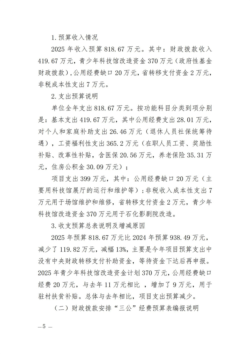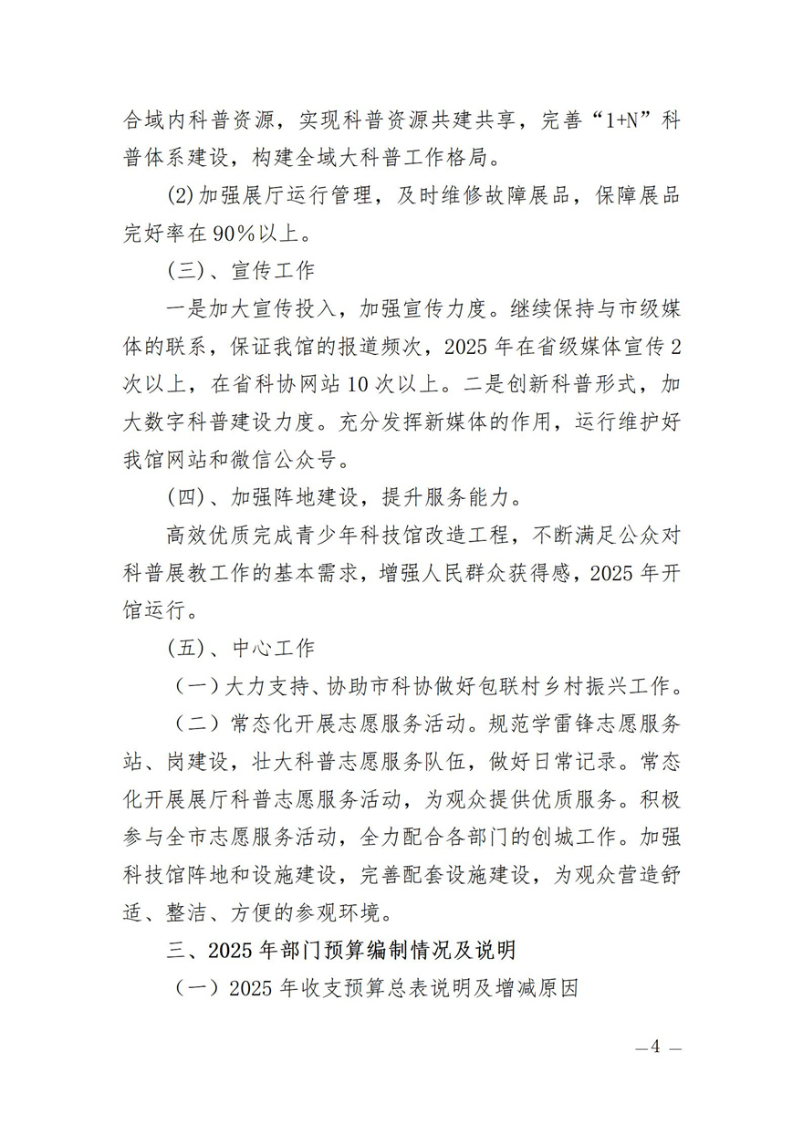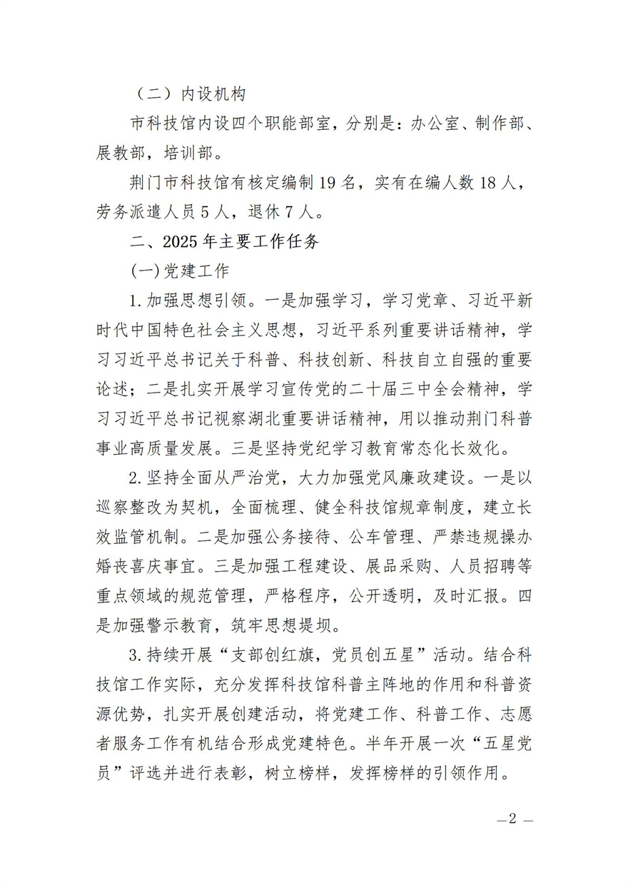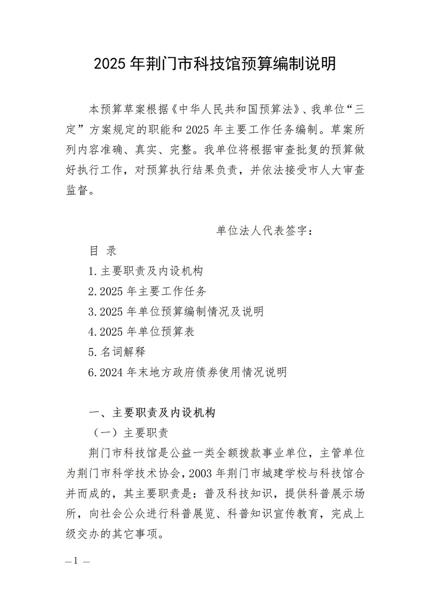 荊門市科技館2025年部門預(yù)算公開編報說明