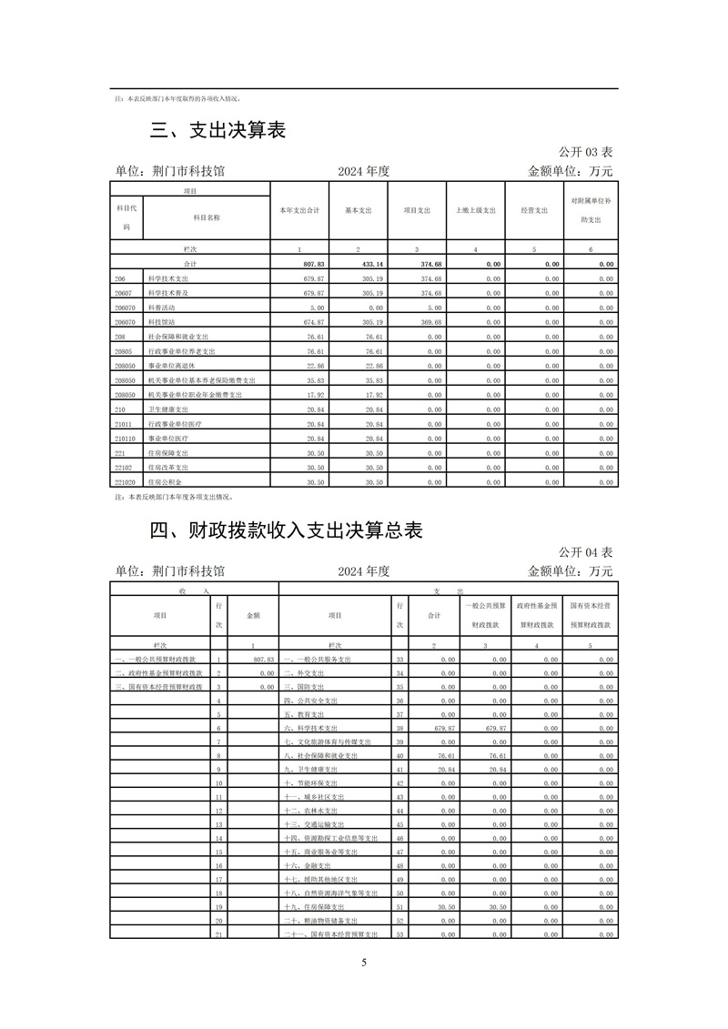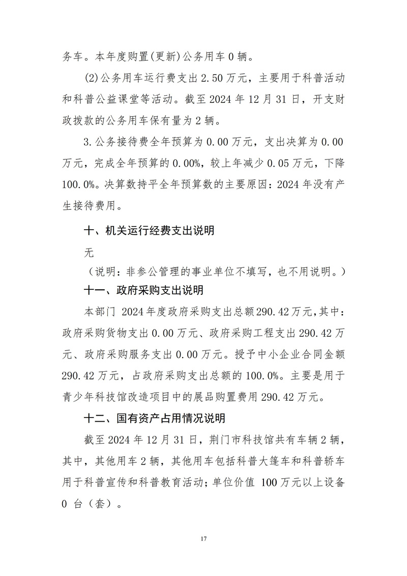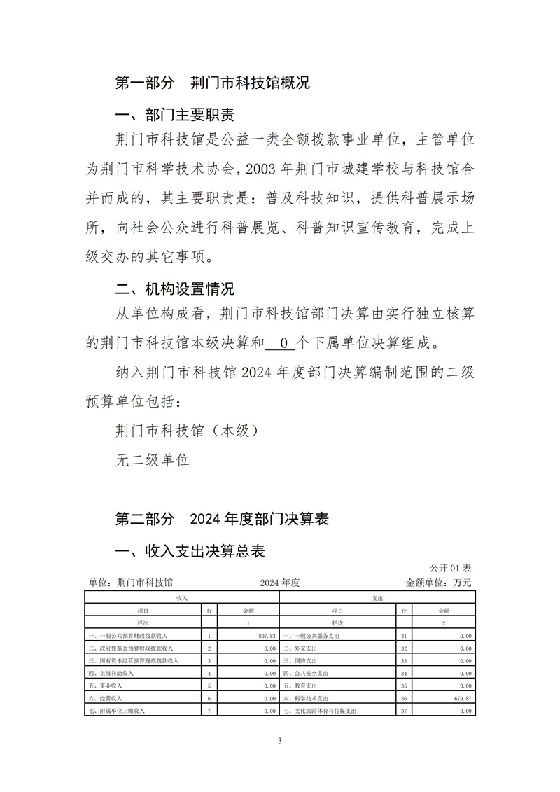 荊門市科技館2024年度部門決算