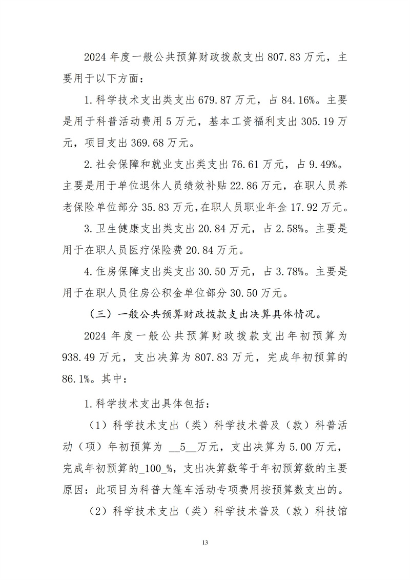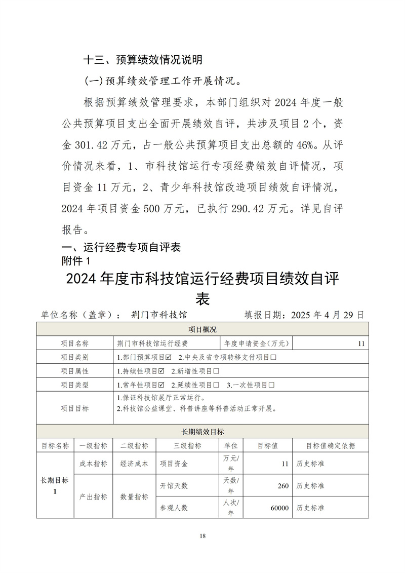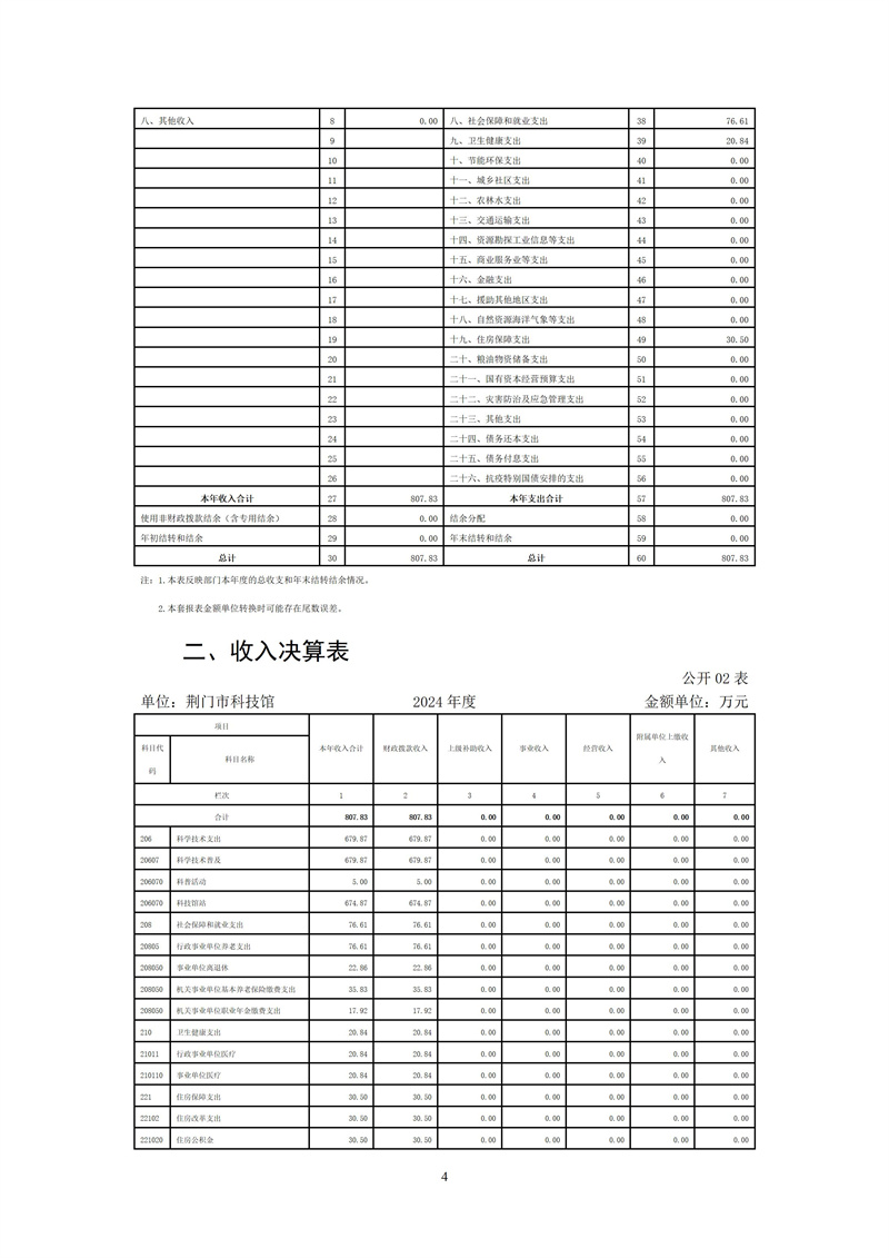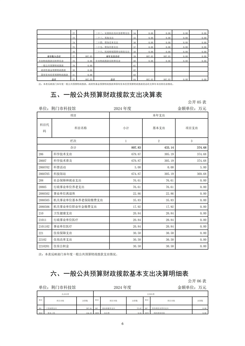 荊門市科技館2024年度部門決算
