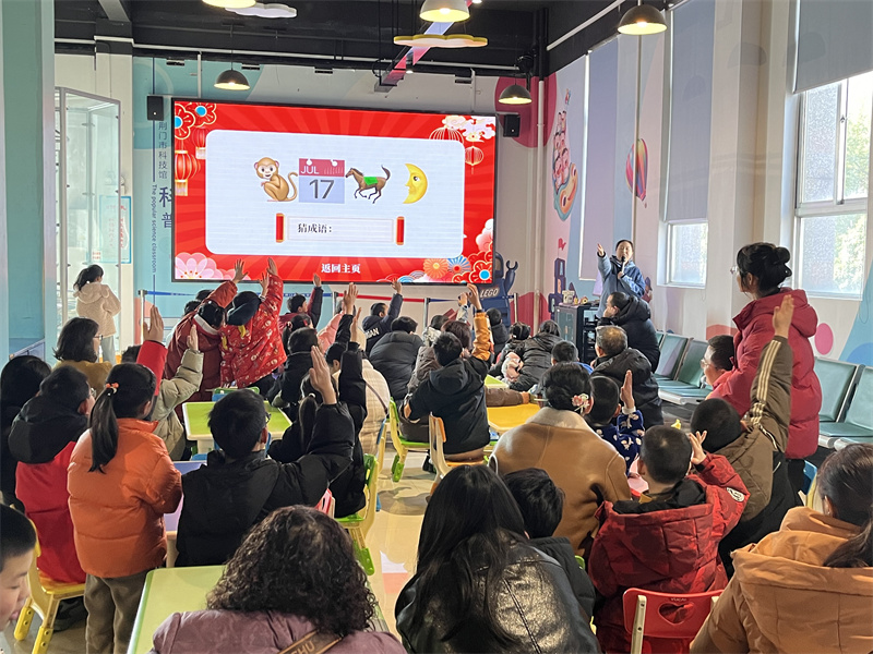 展廳內(nèi),科普公益課堂精彩紛呈。猜成語(yǔ)與猜燈謎環(huán)節(jié),孩子們熱情高漲,紛紛開動(dòng)腦筋,爭(zhēng)先恐后舉手搶答,答對(duì)的小朋友獲得一份科普小制作禮品。