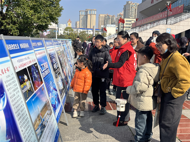 展廳外,不少市民在科技館前廣場(chǎng)駐足參觀“科技改變生活·創(chuàng)新贏得未來(lái)”主題圖片展。圖文并茂的展板生動(dòng)展現(xiàn)了我國(guó)科技創(chuàng)新成果與發(fā)展歷程,讓大家在節(jié)日氛圍中感受科技力量。工作人員現(xiàn)場(chǎng)向市民發(fā)放科學(xué)家精神宣傳手冊(cè),倡導(dǎo)大家學(xué)習(xí)科學(xué)家精神,厚植科學(xué)情懷。